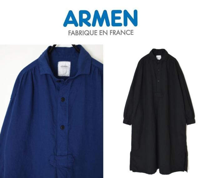 2026春夏新作 Armen アーメン LINEN COTTON PLAIN OVERDYE WORK GATHERED SHIRT DRESS ISNAM2603D レディース