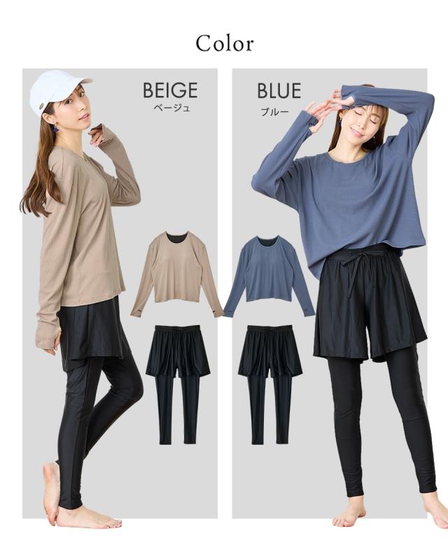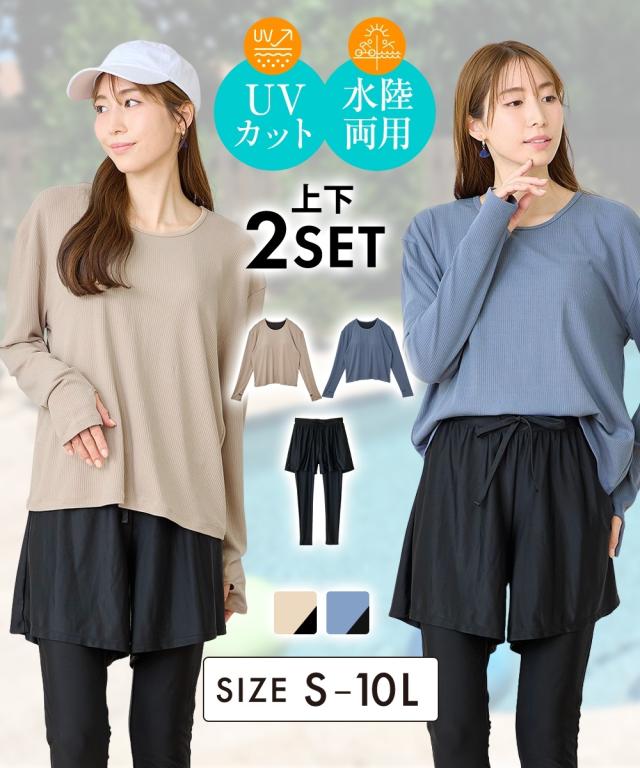 【上下2点セット】インナー一体型ラッシュガード(指穴付き)・レギンス付き水着(LB1074) ニッセン nissen