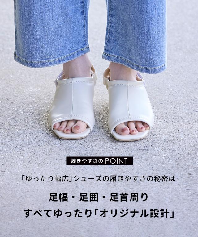 【ゆったり幅広】スクエアトゥストレッチサンダル(ワイズ4E)