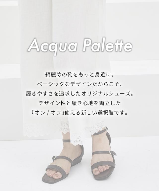 Acqua Palette(アクアパレット) 日常のバリエーションに彩りを 足元に華やかさを 綺麗めの靴をもっと身近に。 シンプルだからこそ、履き心地とデザイン性を両立した、オン/オフ兼用のベーシックスタイル。 履き心地、デザインどちらの選択肢も両方叶えることができる新しい選択肢のシューズです。 ■Acqua Palette(アクアパレット)ベーシックのこだわりポイント ・中足骨、土踏まずのクッションで、疲れにくく理想的な歩行をサポート ・つま先だけに重心がかからずかかとにも体重が乗り足裏全体で負荷を分散できるオリジナル木型設計 ■MDのこだわり シャープな印象を与えるスクエアトゥがON/OFF問わず合わせやすい雰囲気を演出。シンプルなデザインだからこそ、履きやすさを追求したオリジナルパンプスです。 ■ポイント ・上質な質感の人工皮革を使用。柔らかく足にフィット ・中足骨、土踏まずのクッションで疲れにくく、理想的な歩行をサポート ・つま先だけに重心がかからずかかとにも体重が乗り足裏全体で負荷を分散できるオリジナル木型設計 ・屈曲性の良い底材が足への負担を軽減 ・低反発、高反発の2層中敷きクッションで優しい履き心地 ・かかとジェルパッド付きでパカパカしにくい
