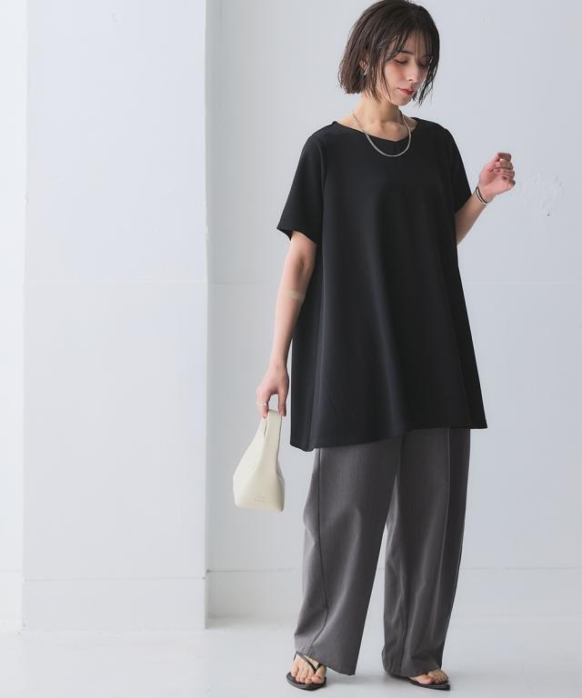 毎日着たくなる、涼しい一着。【シリーズ累計枚数35,000枚を誇るふくれジャガードシリーズに新型登場 夏に嬉しい機能性が増えてパワーアップ 】着るだけで、すっきり涼やか。フレアシルエットふんわり体型をカバーしてれます。 ■デザイン Vネックで顔まわりをすっきり演出。ふんわりシルエットで気になる下半身を安心カバー。袖丈もしっかりあるので気になる二の腕も隠れて安心、全身すっぽり隠れるデザインで、動きやすく軽やかに。 ■素材 凹凸感のある素材で体型を拾いにくく、自然に美しいシルエット。立体感のある風合いが、着るだけで高見えを叶えます。涼やかな素材感で夏も快適。ポリエステル素材だから洗濯後もすぐ乾き、アイロンいらずでお手入れ簡単。しわになりにくく、旅行やお出かけにも便利です。紫外線カット機能付きで、外出時も安心。 ■おすすめのスタイリング いつものボトムと合わせるだけで簡単にコーディネートがきまる時短アイテム。丈が長すぎないので太目のパンツと合わせてもずるゆるコーデでかわいいのでお勧め。五分袖なので涼しい時は中に長袖を合わせても素敵なのでお勧めです。