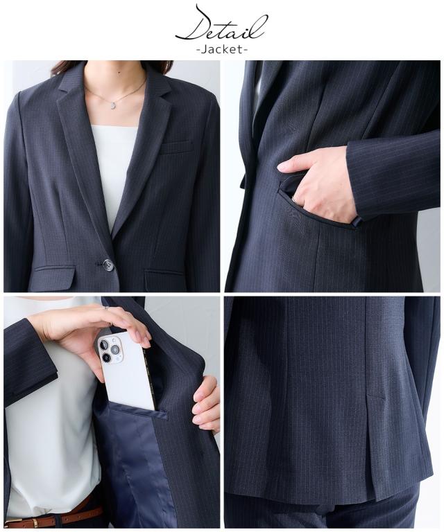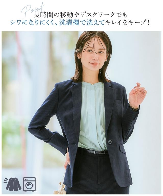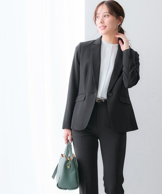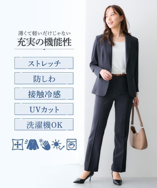 【レディーススーツ】うすカルタテヨコストレッチテーラードジャケットパンツスーツ(ジャケット+ストレートパンツ)