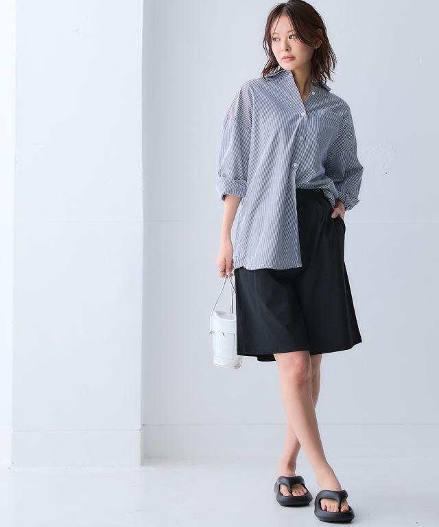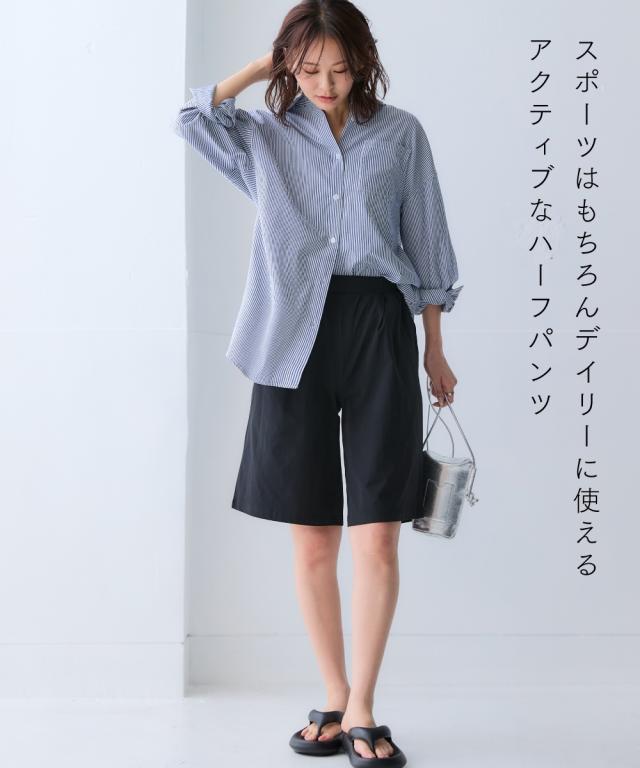「毎日着たくなる、涼しい一着。」 スポーツラインにオリジナルのアクティブウェアが登場! アクティブなシーンだけでなく、おしゃれ着としても着用できます。 ■デザイン 動きやすいだけでなく、通気性が良く快適に着用できるワイドハーフパンツ。 ポケットが両脇についているので便利。 ウエストは総ゴム仕様で簡単に着脱できます。 内紐もついているのでサイズ調整も簡単! 絶妙な長さのシルエットは靴下や靴を変えるだけで雰囲気が変わり、コーディネートの幅が広がります。 ■素材 軽量で縦・横にストレッチ性のある生地なので動きやすく、快適に着用できます。 ポリエステルなのでシワになりにくく、乾きやすいため普段使いにも便利。 吸汗速乾機能付きなので汗をかいてもすぐに乾くのでさらっと爽やかに着用できます。 UVカット機能付きで日焼け対策もばっちり。 抗菌防臭機能付きで気になるにおいも安心。 ジムやスポーツなどのアクティブなシーンやリラックスシーン、街中でのタウンユースコーデとしてなど幅広く着用できます。 ■コーディネート 同素材シリーズでコーディネートできます。 シャツやジャケットと合わせたコーデも〇
