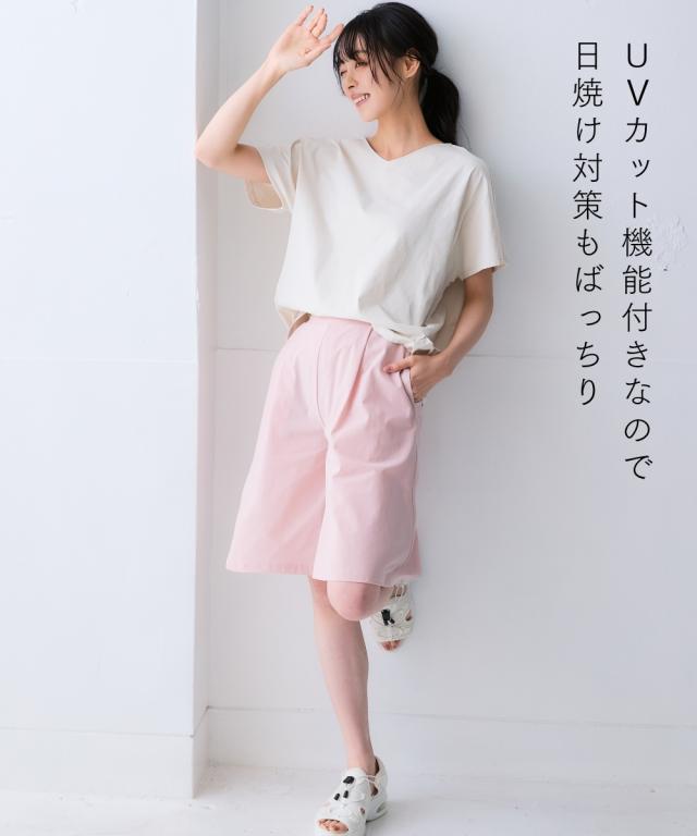 全方向ストレッチ軽量タックワイドハーフパンツ(吸汗速乾・UVカット・接触冷感・抗菌防臭) ニッセン nissen