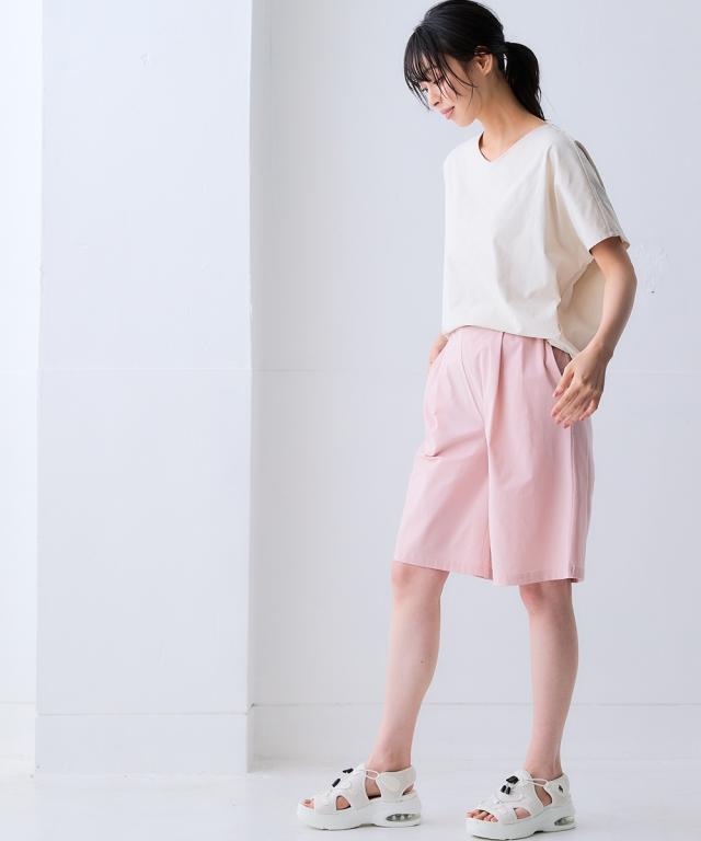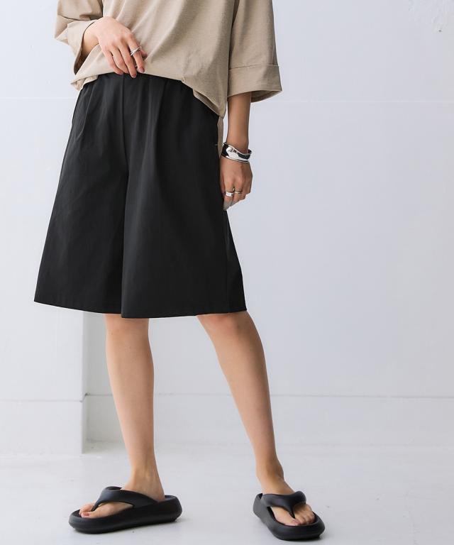 全方向ストレッチ軽量タックワイドハーフパンツ(吸汗速乾・UVカット・接触冷感・抗菌防臭)