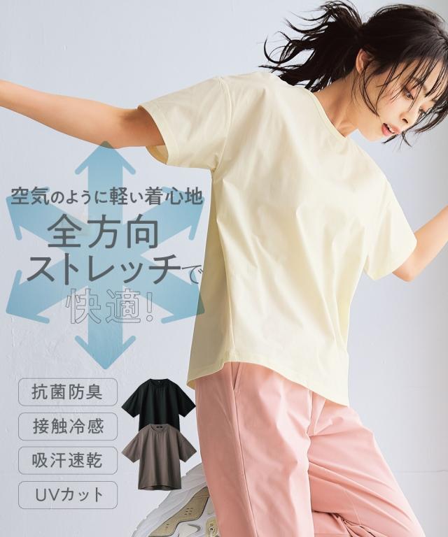 全方向ストレッチ軽量バックタック半袖Tシャツ(吸汗速乾・UVカット・接触冷感・抗菌防臭) ニッセン nissen