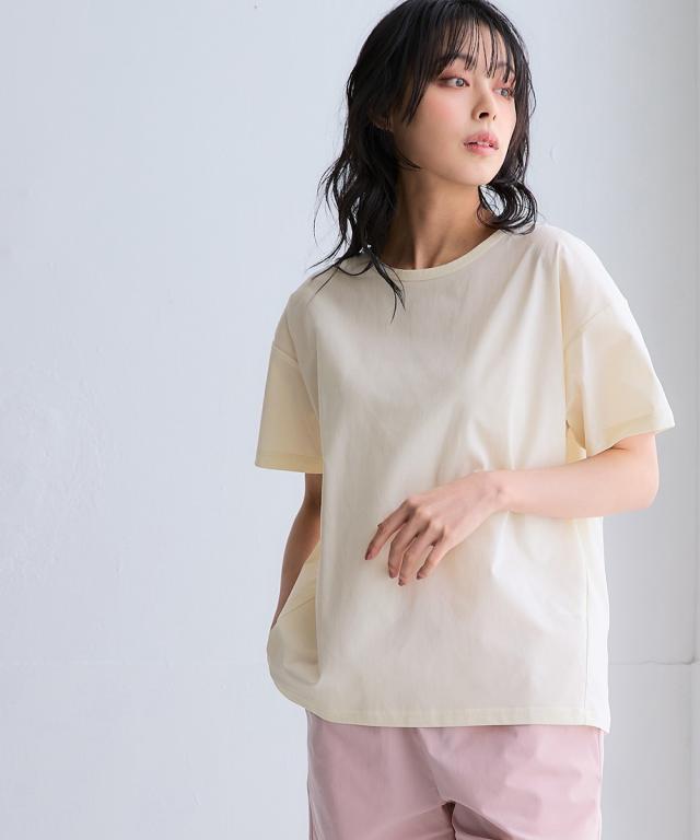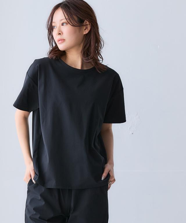 「毎日着たくなる、涼しい一着。」 スポーツラインにオリジナルのアクティブウェアが登場! アクティブなシーンだけでなく、おしゃれ着としても着用できます。 ■デザイン 背中にタックが入ったシンプルなデザインのTシャツ。 首元は程よい開きのクルーネック仕様。 襟裏テープ付き。 ■素材 軽量で縦・横にストレッチ性のある生地なので動きやすく、快適に着用できます。 ポリエステルなのでシワになりにくく、乾きやすいため普段使いにも便利。 吸汗速乾機能付きなので汗をかいてもすぐに乾くのでさらっと爽やかに着用できます。 UVカット機能付きで日焼け対策もばっちり。 抗菌防臭機能付きで気になるにおいも安心。 ジムやスポーツなどのアクティブなシーンやリラックスシーン、街中でのタウンユースコーデとしてなど幅広く着用できます。 ■コーディネート 同素材シリーズでコーディネートできます。 シンプルなTシャツなのでデニムやスカートなどお持ちのアイテムで簡単にコーディネートできます。