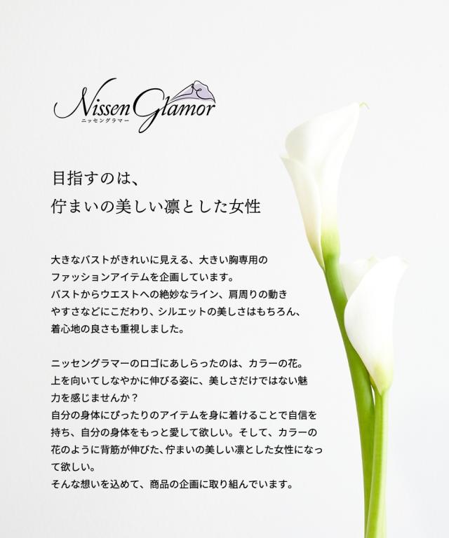 【グラマーバストさん向け】 ニッセングラマーの洋服は大きな胸をキレイに魅せることにこだわった、グラマーバストさん専用設計。 「胸が入る」だけでなく、胸が大きい女性のスタイルが美しく見えるようにこだわりました。 シリーズ商品は「大きな胸をキレイに魅せる服」で検索して下さい。