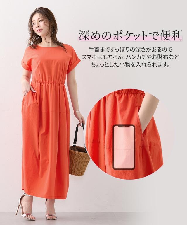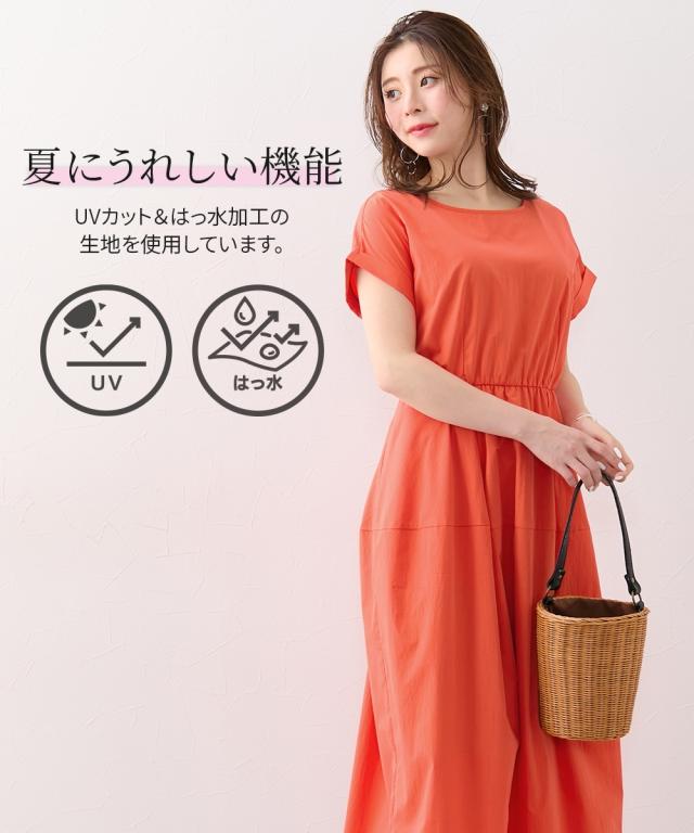 【大きい胸専用】UV・撥水ウエスト切替コクーン半袖ワンピース(ポケット付) ニッセン nissen