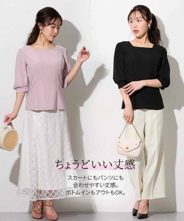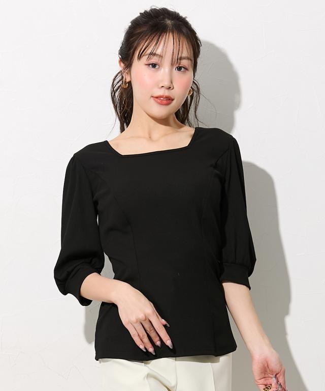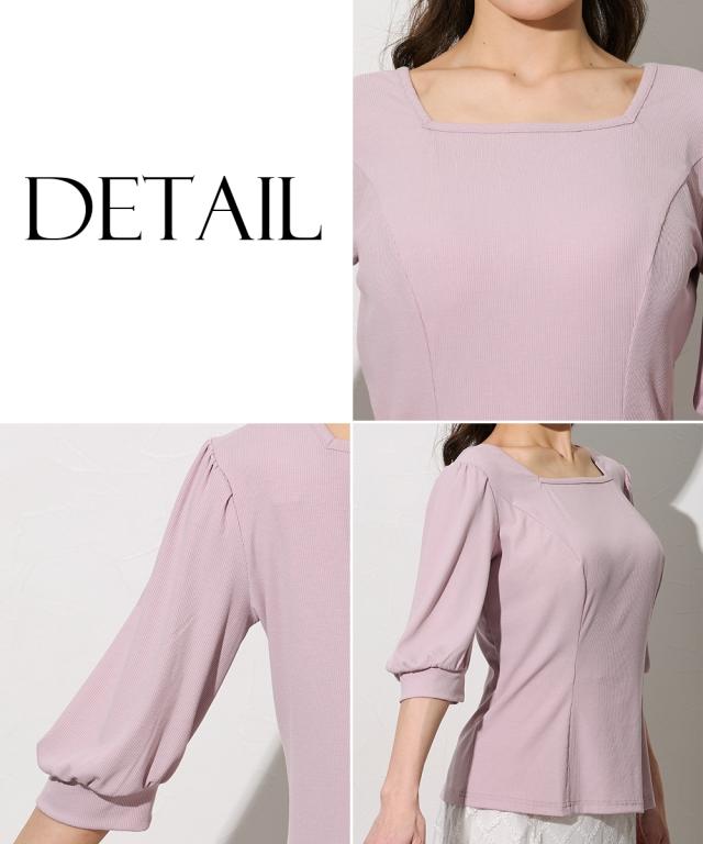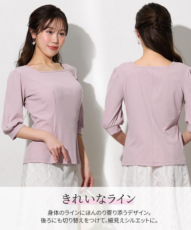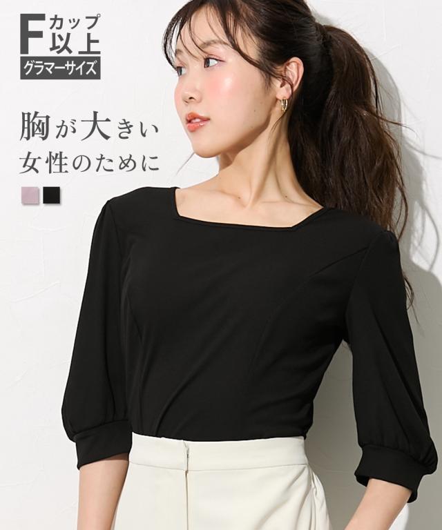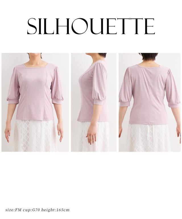 【大きい胸専用】リブスクエアネックデザインカットソー(肘が隠れる6分袖) ニッセン nissen