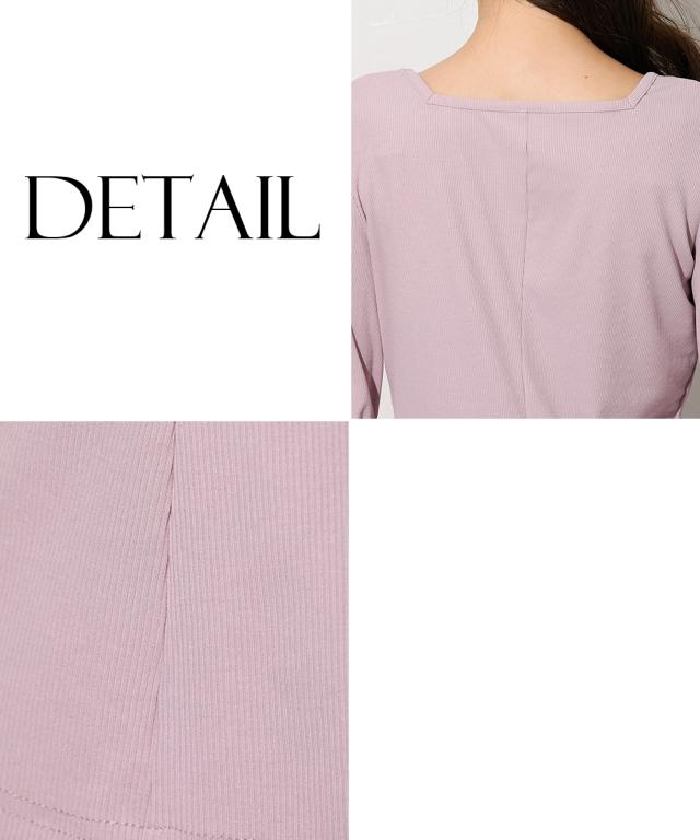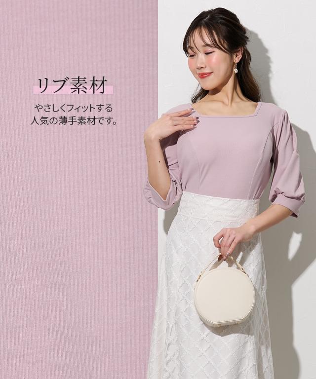 【大きい胸専用】リブスクエアネックデザインカットソー(肘が隠れる6分袖)