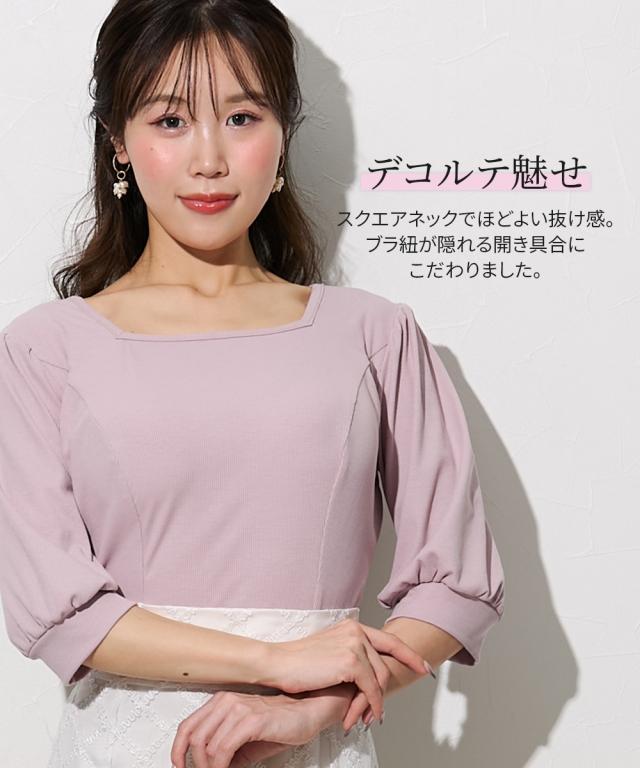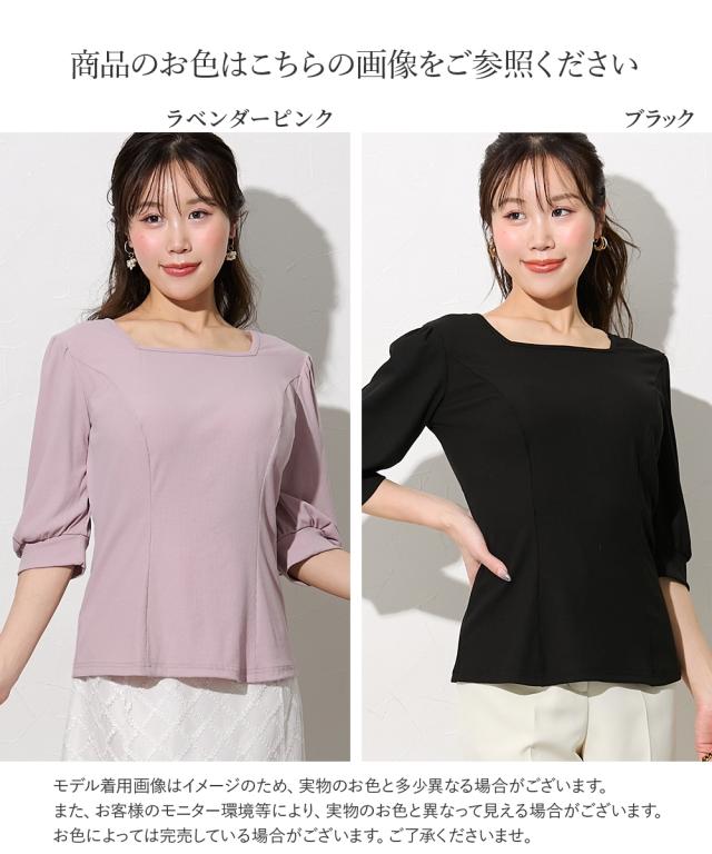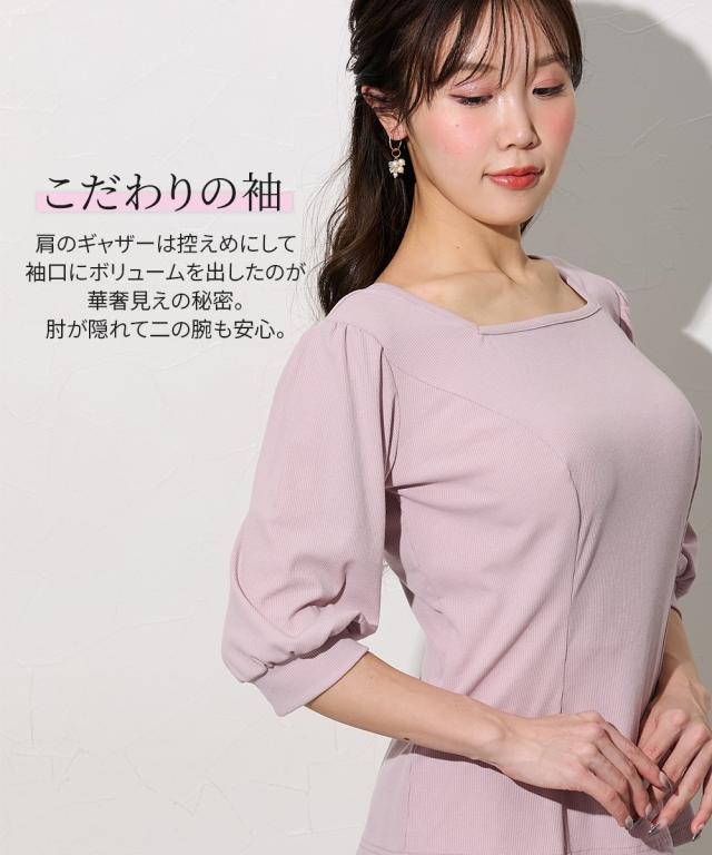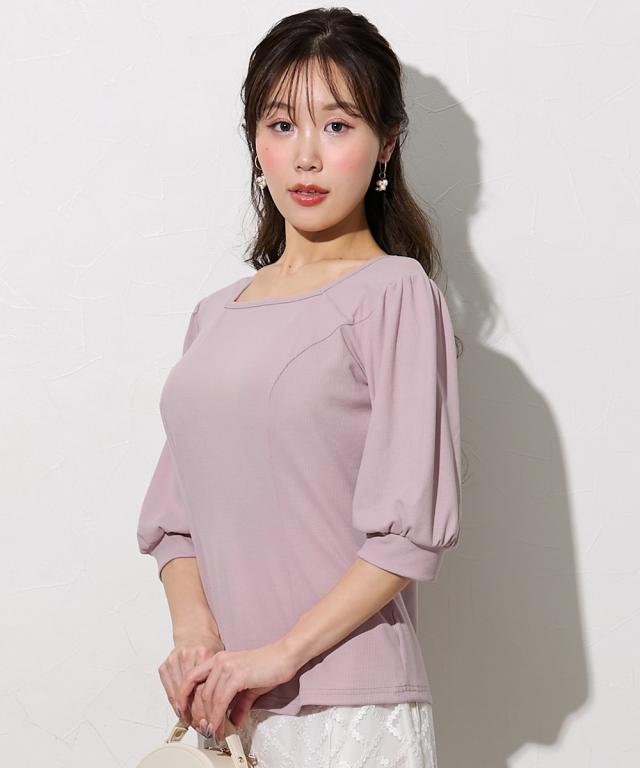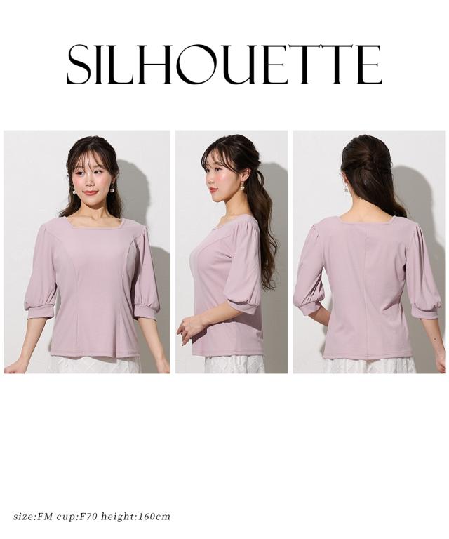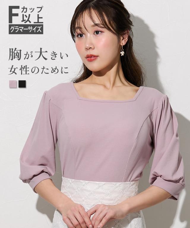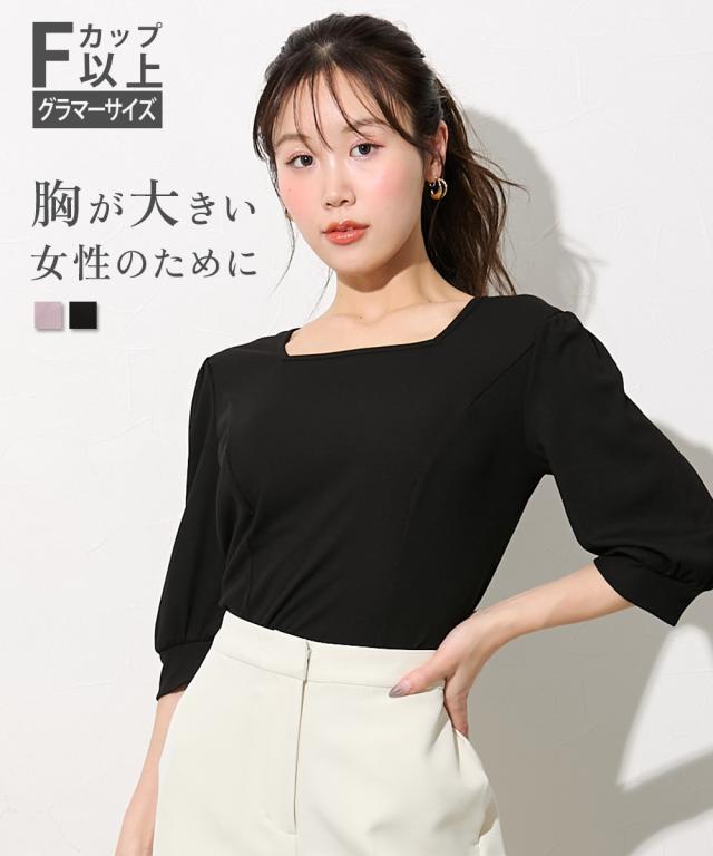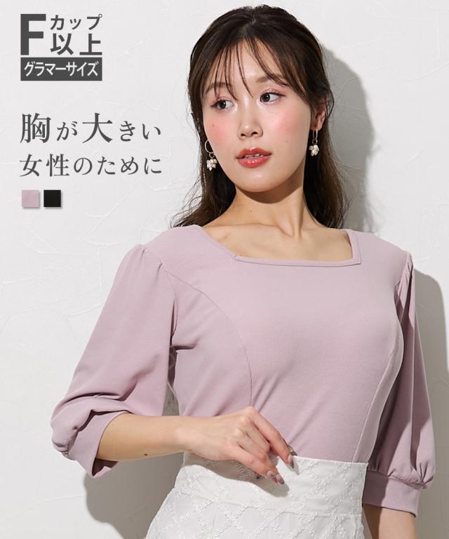 【大きい胸専用】リブスクエアネックデザインカットソー(肘が隠れる6分袖)
