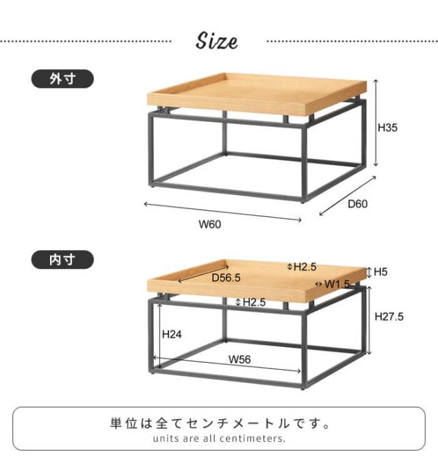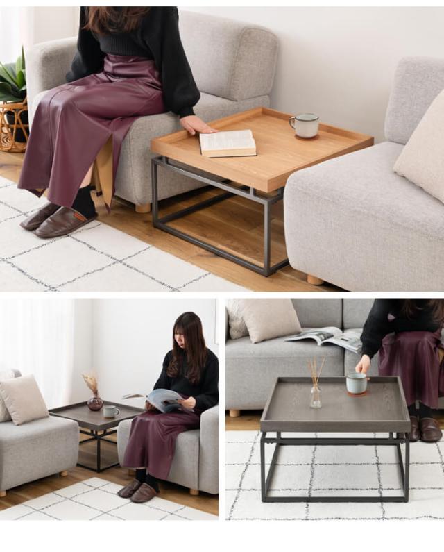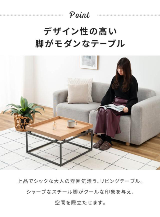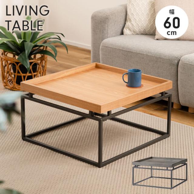 センターテーブル 60×60 正方形 天然木 リビングテーブル 縁あり 幅60 四角 木製 スチール おしゃれ 北欧 トレー型 コーナー コーヒーテーブル リビング インテリア 家具 デザイン ナチュラル 新生活 一人暮らし