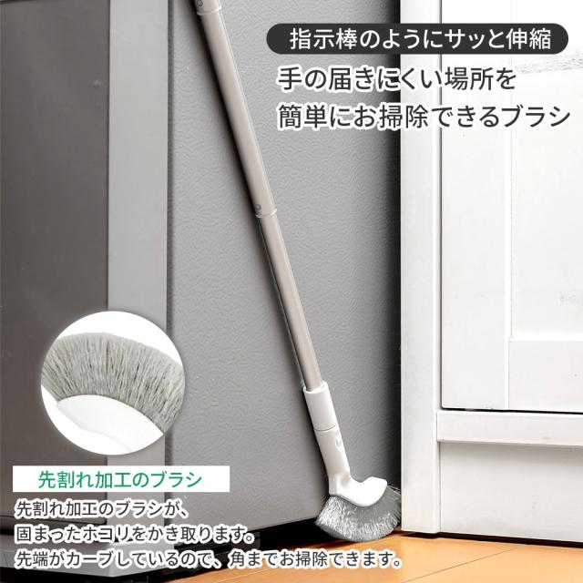 伸縮ブラシ先割れ加工のブラシが固まったホコリをかき取ります。
