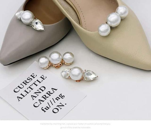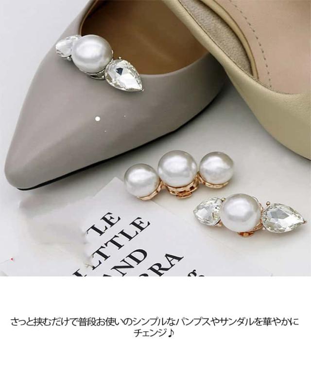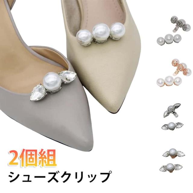 シューズクリップ 2個1組 1ペア シューズパーツ シューズアクセサリー 靴クリップ 靴飾り キラキラ ゴージャス パンプス バッグ パール シューズアクセサリー 取外しOK 着せ替え ウェディングシューズ ドレスシューズ ブライダルシューズ