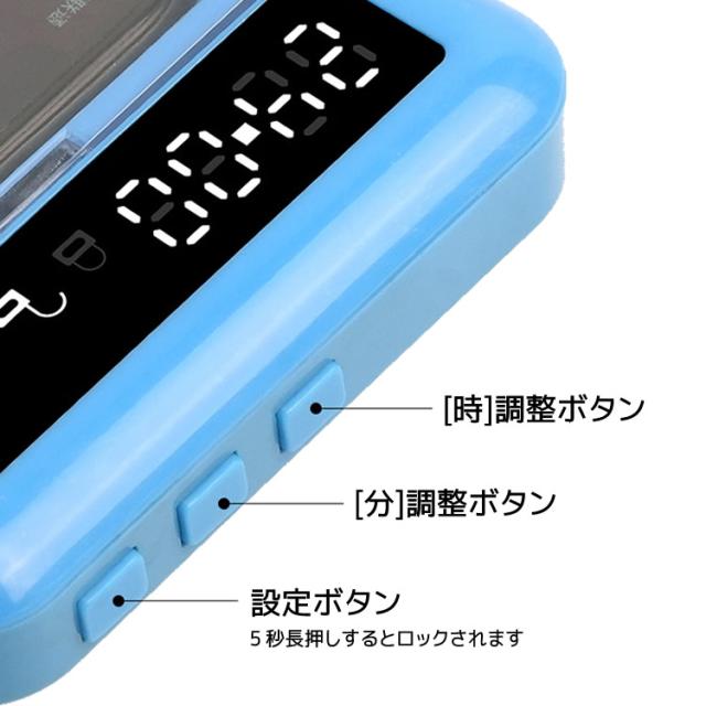 緊急時に使用する場合は設定ボタンと分調整ボタンを同時に10秒長押しすると解除されます。