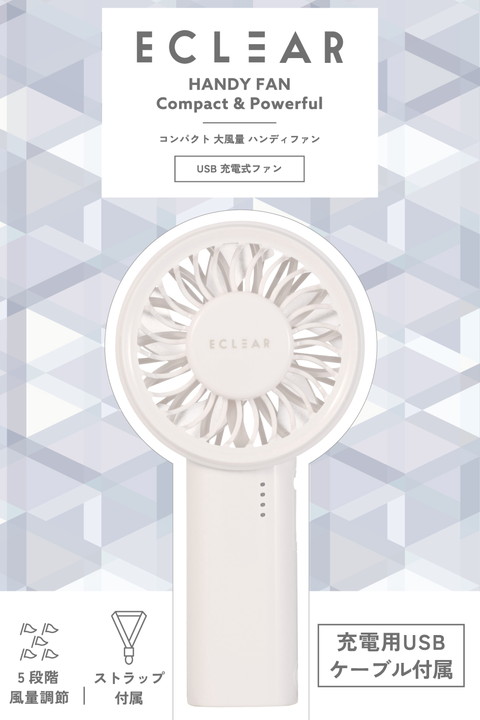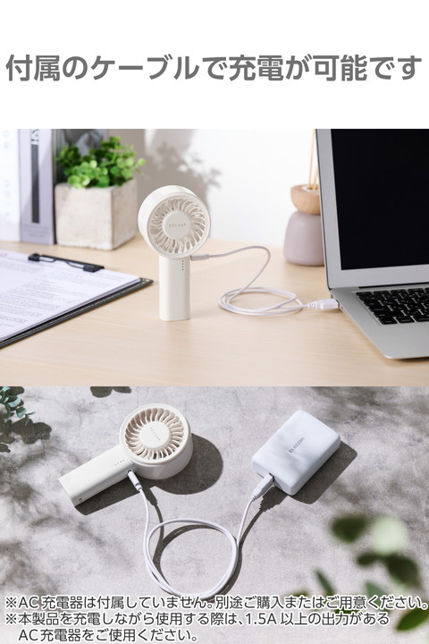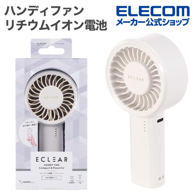 エレコム ハンディファン コンパクト 大風量 リチウムイオン電池 5段階調整 冷風 サーキュレーター 手持ち扇風機 ストラップ付 Type-C充電 ホワイト┃FAN-U261WH