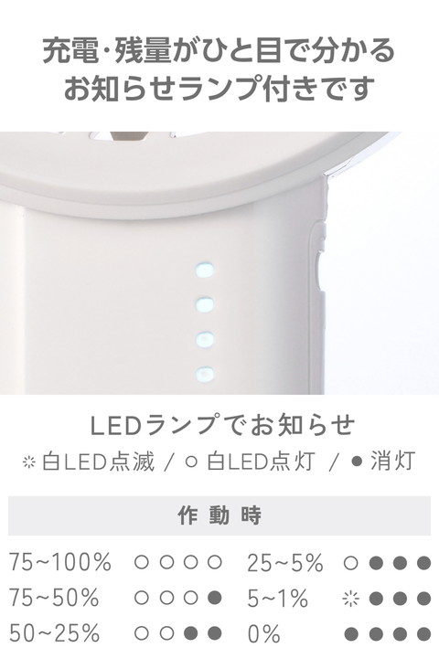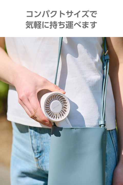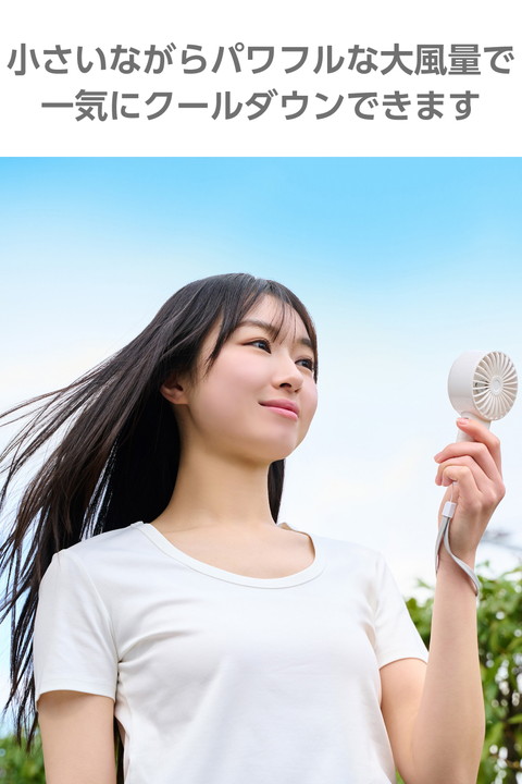 大風量でサッと涼しくリフレッシュ。小さいながら汗ばむ季節も一気にクールダウンできる、コンパクト大風量 ハンディファンです。充電・残量がひと目で分かるお知らせランプ付きなので、外出前にチェックできて便利です。![]() ■小さいながらパワフルな大風量で、汗ばむ季節も一気にクールダウンできます。 ■バッグやポケットにも邪魔にならず、すっきり入るコンパクトサイズ。通勤やお出かけにも気軽に持ち運べます。 ■うっかり手を放しても安心な落下防止のハンドストラップ付き。手首にかけて使えて、バッグからの出し入れもしやすいので、外出時の持ち歩きに活躍します。 ■USB Type-C(TM)ポートから充電が可能。付属のケーブルで、AC充電器やノートパソコンから充電できます。 ■※AC充電器は付属していません。別途ご購入またはご用意ください。 ■充電・残量がひと目で分かるお知らせランプ付き。外出前に充電残量をチェックできるので、安心して持ち歩けます。 ■好みに合わせて5段階(微弱・弱・中・強・最強)の風量調節ができます。 ■髪の毛の巻き込みや異物の挟み込みを検知するとファンが停止する「自動安全OFF設計」です。 ■過充電・過放電を防ぐ安心の回路設計です。 ■※USB Type-C and USB-C are trademarks of USB Implementers Forum. ![]() ■電源:充電式リチウムイオン電池 ■連続動作時間:約1.5時間〜約7時間(満充電時) ※風量の強弱によって変化します。 ■充電時間:約4時間 ■定格入力:5V/1.5A ※本製品を充電しながら使用する際は、1.5A以上の出力があるAC充電器をご使用ください。 ■消費電力:約4.2W ■バッテリー容量:2000mAh ■風量調節:5段階(微弱・弱・中・強・最強) ■外形寸法:幅約73.7mm×奥行約39.2mm×高さ約144.5mm ■質量:約130.5g ※本体のみ ■カラー:ホワイト ■使用温度範囲:放電時:0℃〜45℃、充電時:15℃〜40℃ ■付属品:ハンドストラップ×1本、給電用USB-A - USB Type-C(TM)ケーブル×1本(約80cm ※コネクター部含まず) ■保証期間:1年間 |