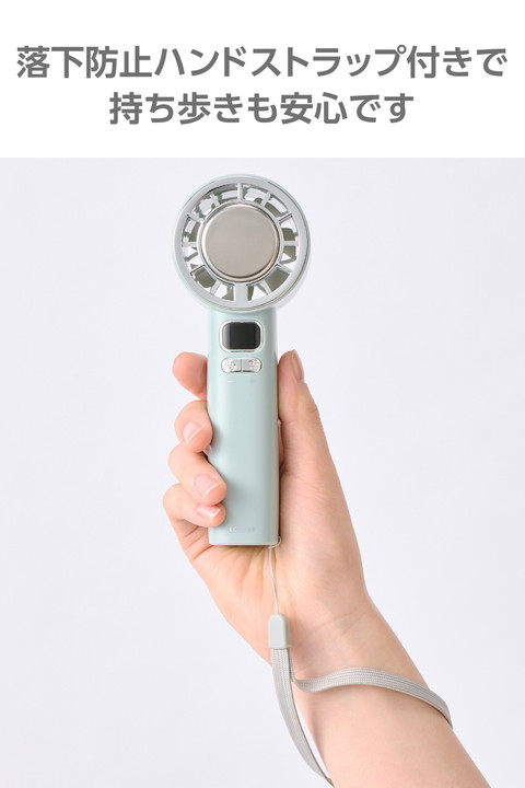 地球にも人にも優しいナトリウムイオン電池を採用。長寿命で、安心して使える冷却プレート付きハンディファンです。ファンの風とプレートの冷たさで、いつでもどこでも瞬間クールダウン。充電・残量がひと目で分かるお知らせ表示付きなので、外出前にチェックできて便利です。![]() ■日常の持ち歩きやさまざまな使用環境を想定し、電源設計にこだわりました。安全性の高い電池を搭載し、安心して使えるハンディファンです。 ■ナトリウムイオン電池のサイクル寿命は約5,000回で、一般的なリチウムイオン電池に対して約10倍の長寿命。買い替えの手間が減って、暑い夏の相棒として長く活躍します。 ■ナトリウムイオン電池はコバルト・リチウムなどを使用しないため、環境への負荷が少なく、安定した供給を実現。持続可能な資源利用に貢献し、地球にも人にも優しい電池を搭載しています。 ■フロント部分の冷却プレートは、冷却のペルチェ素子を採用。肌で直接涼しさを感じられ、ファンの風と合わせて一気にクールダウンできます。 ■動作中に右ボタンを長押しすると、冷却プレートをON/OFFできます。冷却プレート使用時は、スノーマークが点灯します。 ■※充電中は使用できません。 ■うっかり手を放しても安心な落下防止のハンドストラップ付き。手首にかけて使えて、バッグからの出し入れもしやすいので、外出時の持ち歩きに活躍します。 ■USB Type-C(TM)ポートから充電が可能。付属のケーブルで、AC充電器やノートパソコンから充電できます。 ■※AC充電器は付属していません。別途ご購入またはご用意ください。 ■風量・充電・残量が数字でひと目で分かるお知らせ表示付き。外出前に充電残量をチェックできるので、安心して持ち歩けます。 ■好みに合わせて10段階の風量調節ができます。細かく調節できるので、ちょうどいい風量を選べます。 ■髪の毛の巻き込みや異物の挟み込みを検知するとファンが停止する「自動安全OFF設計」です。 ■過充電・過放電を防ぐ安心の回路設計です。 ■※USB Type-C and USB-C are trademarks of USB Implementers Forum. ![]() ■電源:充電式ナトリウムイオン電池 ■連続動作時間:冷却プレートOFF時:約2時間〜約4.5時間(満充電時)、冷却プレートON時:約1時間(満充電時) ※風量の強弱によって変化します。 ■充電時間:約2時間 ■定格入力:5V/2A ※AC充電器は出力2A以上のものをご使用ください。 ■消費電力:約10W ■バッテリー容量:3050mAh ■風量調節:10段階 ■外形寸法:幅約65mm×奥行約53mm×高さ約167mm ■質量:約195g ※本体のみ ■カラー:グリーン ■使用温度範囲:放電時:0℃〜50℃、充電時:15℃〜40℃ ■付属品:ハンドストラップ×1本、給電用USB-A - USB Type-C(TM)ケーブル×1本(約45cm ※コネクター部含まず) ■保証期間:1年間 |