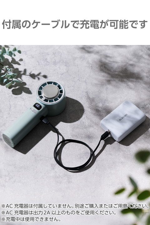 エレコム ハンディファン 冷却プレート付き ナトリウムイオン電池 10段階調整 冷風 サーキュレーター 手持ち扇風機 ストラップ付 Type-C充電 グリーン┃FAN-U264GN