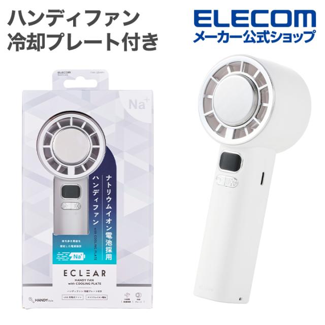 エレコム ハンディファン 冷却プレート付き ナトリウムイオン電池 10段階調整 冷風 サーキュレーター 手持ち扇風機 ストラップ付 Type-C充電 ホワイト┃FAN-U264WH