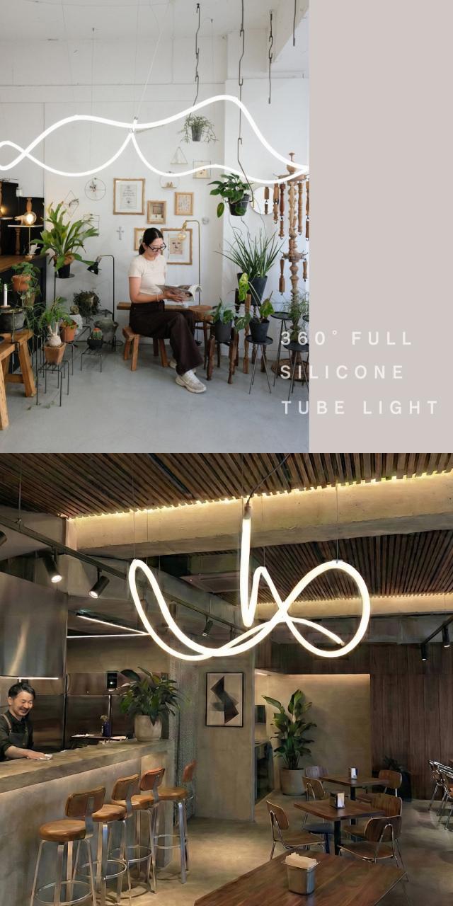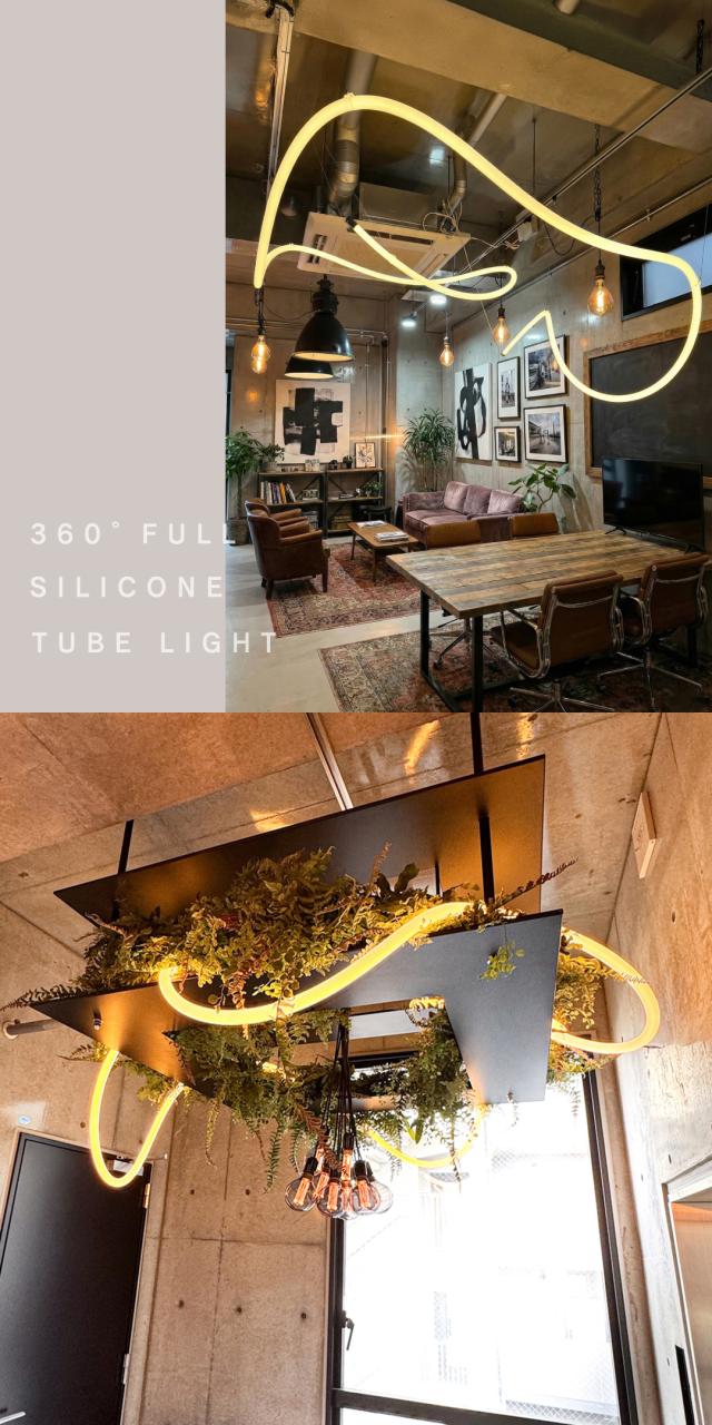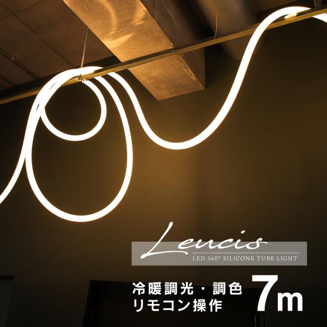 LEDチューブライト 7m 大型 ライン照明 間接照明 店舗照明 360° 高天井 吹き抜け レストラン カフェ 工事不要 調光 調色 天井吊り ロープライト テープライト 大きい 太い 曲線 デザイン照明 照明器具 コンセント式 おしゃれ かっこいい ネオン風 ランプ LEUCIS ルーシス