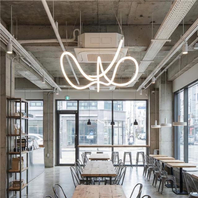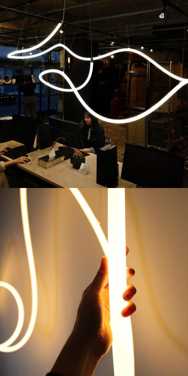 直線的な蛍光灯を紐状にしたような、しなやかな曲線を描くフレキシブルランプ。空間そのものをデザインする、ロープデザイン照明です。