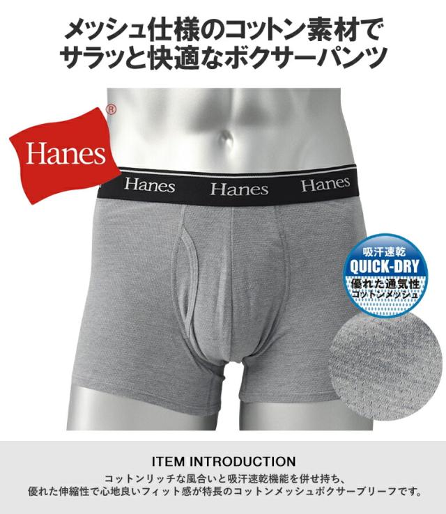吸汗速乾 ボクサーパンツ ボクサーブリーフ ドライ メンズ Hanes ヘインズ コットンメッシュ 機能性 通気性 ストレッチ 1枚組 1P HM6ED201 正規品【Z8K】【パケ2】