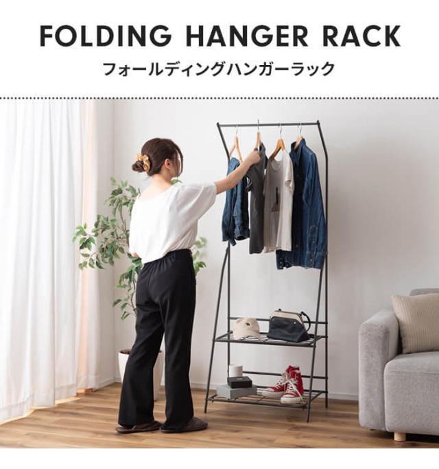 スリムで置く場所を選ばない、大容量のフォールディングハンガーラック。