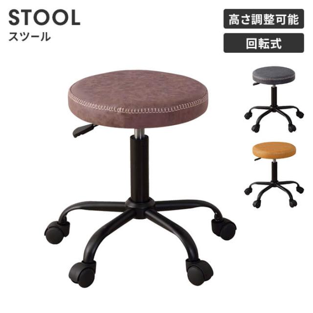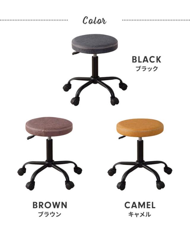 キャスター付き スツール レザー 昇降式 椅子 イス 円形 ラウンドスツール 回転椅子 デスクチェア オフィスチェア 丸椅子 背もたれなし 肘なし 1脚 単品 高さ調整 おしゃれ ヴィンテージ ソフトレザー モダン 在宅 テレワーク