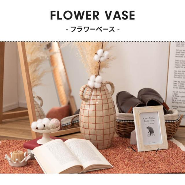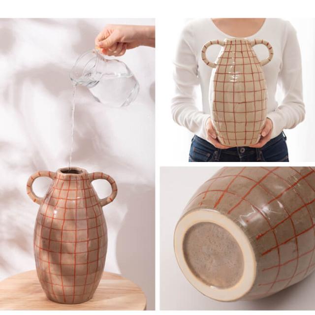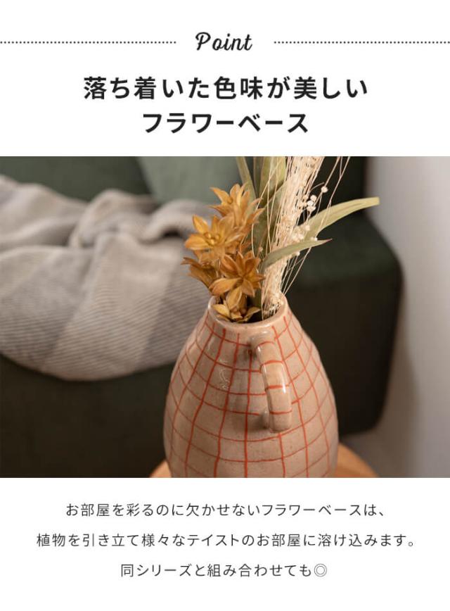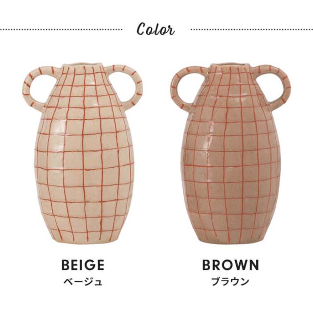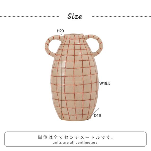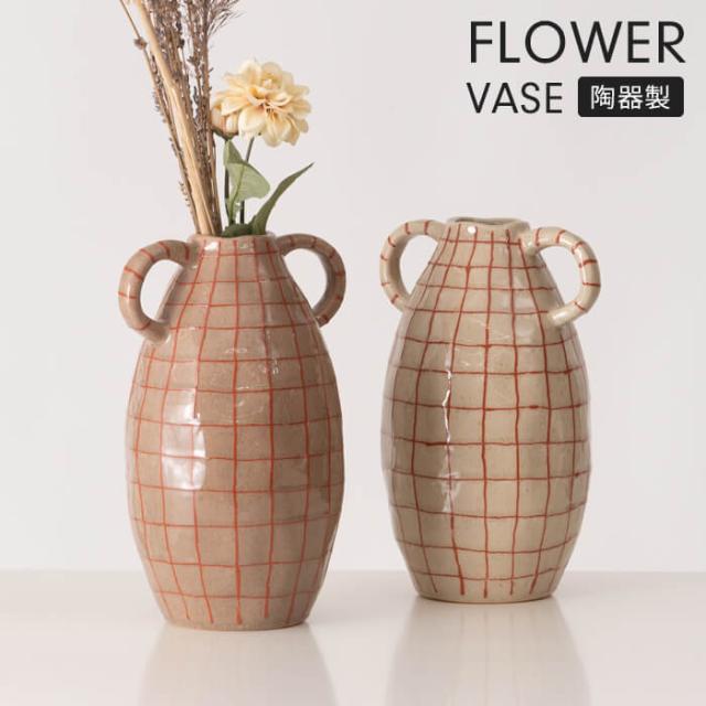 | フラワーベース 花瓶 花びん かびん フラワースタンド 陶器 北欧 おしゃれ ドライフラワー シンプル 艶 生花 枝物 卓上 床置き 陶器製 和モダン モダン レトロ ベーシック インテリア 寝室 リビング 玄関 廊下 室内 かわいい 大きい 大きめ ベージュ ブラウン 取っ手付き 高さ21cm チェック 柄 赤 レッド スリム |