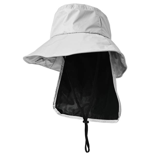 直射日光の下でも、水やエネルギーを消費せずに外気温よりも涼しく保つことができる【Radi-Cool】を採用。日傘の表面から受ける熱は、【放射冷却(放熱力)】と【遮熱率60%以上】の温度上昇抑制力によって抑制されます。遮光率100%、UVカット率100%で、眩しい日光や紫外線を遮断します。肌の奥深くまでダメージを与えると言われる近赤外線を100%遮断します。撥水防水機能で水圧18,000mm以上なので、雨の日でも使用できます。取り外し可能な日よけが付いているので、首の日焼けや暑さから守ることができます。マジックテープで簡単に着脱できるので、2通りの使い方ができます。【サイズ調整可能】内側のベルクロテープで頭囲を調節できます。取り外し可能なストラップ(あご紐)が付いているので、風で飛ばされる心配がありません。ストッパーで長さを調節できるので、お好みの位置で使用できます。強く引っ張りすぎると外れる安全機能が付いています。サイドクラウンの通気孔と内側のメッシュにより、蒸気や汗で生地がべたつくリスクを軽減します。つばの周りに柔らかいワイヤーが入っているので、お好みの形に調整できます。
