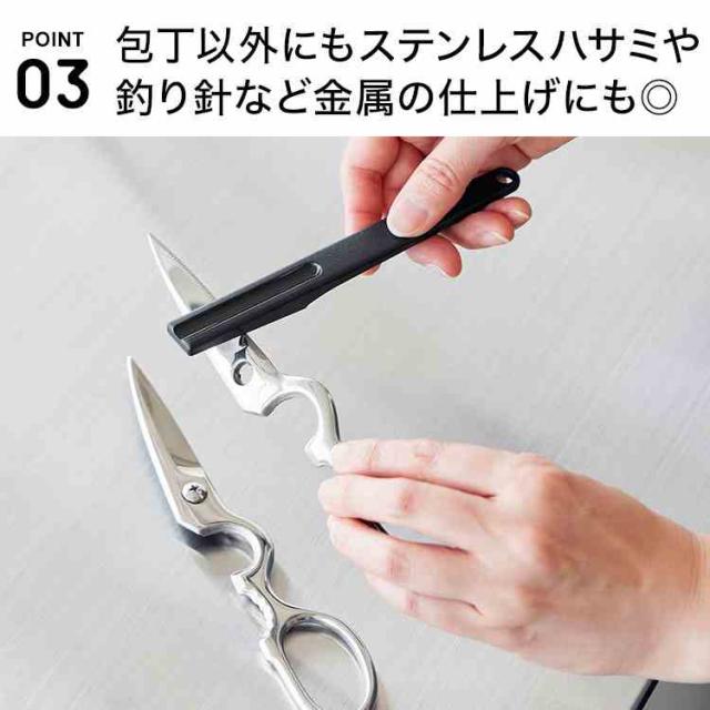 研ぎ職人と同じ「15°」の角度で研げるスティック形状のシャープナーです。ステンレス製のハサミや、セラミック・チタン・ハガネ製の包丁の刃研ぎはもちろん、釣り針など金属製品の仕上げにもご使用いただけます。