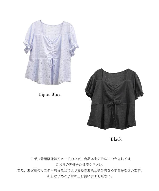 大きいサイズ/レディース/3L/4L/アイレットレースシャーリングブラウス
