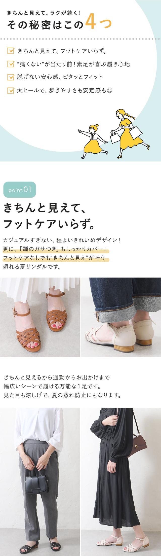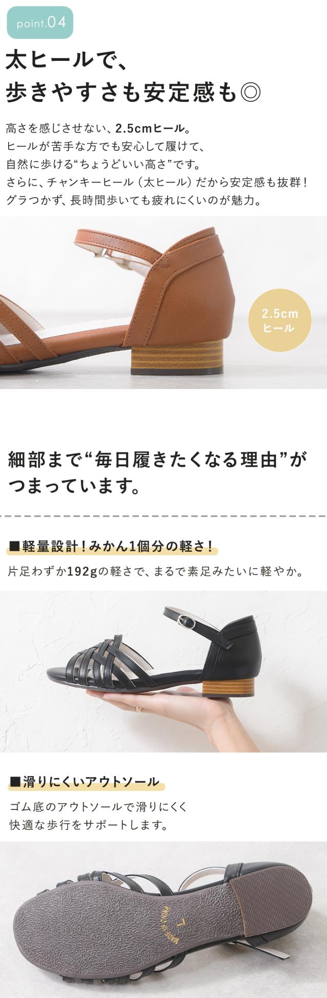 ぺたんこローヒールは、疲れにくく歩きやすい。
