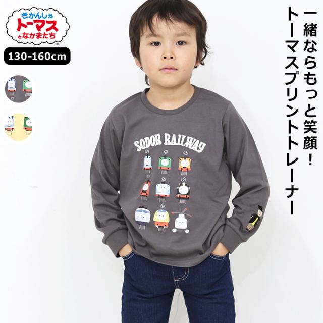 トレーナー きかんしゃトーマス キッズ 男の子 100cm 110cm 120cm 130cm 長袖 春秋 キャラクター チャコール イエロー 小学校 お洒落 かわいい トップス 男子 普段着 トップス トーマス キャラクター 長袖トレーナー 送料無料