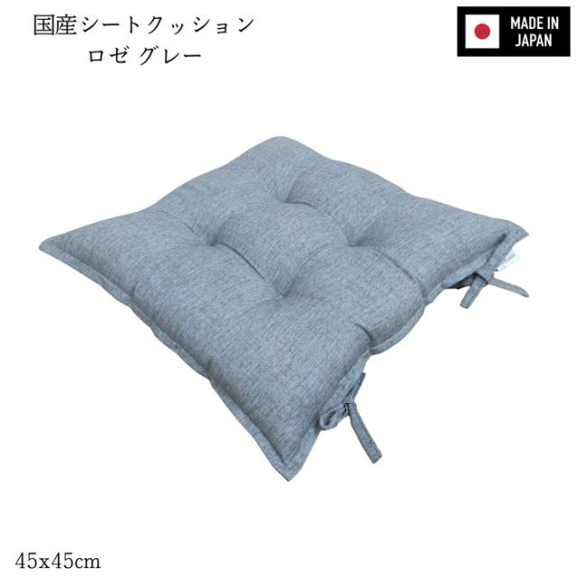 国産シートクッション ロゼ グレー さわやか麻風生地 固定紐付 日本製