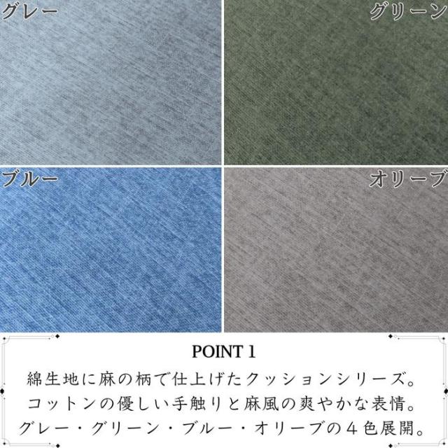 綿生地に麻の風合い柄で仕上げたクッションシリーズ。