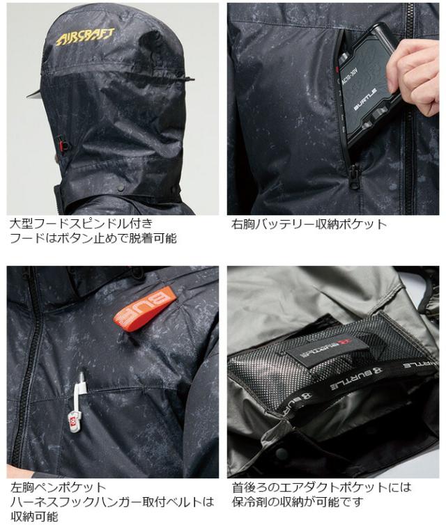BURTLE(バートル)の空調ウェア、AIR CRAFT(エアークラフト)の2026年新作のACベストです。 背面に干渉しない汎用性の高さが魅力のサイドバックファン取付設計モデルです。 軽量・撥水性・アルミC加工による遮熱性(-8℃)を備えたソフトシェル素材を使用し、背ヨークには保冷剤を収納可能な通気エアダクトポケットを装備しています。 脱着可能なヘルメットの上からかぶれる大型フードをはじめ、フックハンガー、背ランヤードホールを配備しており、フルハーネスにも完全対応しています。 男女ユニセックスに対応しています。 ※ファン・バッテリーは別売りです。 |