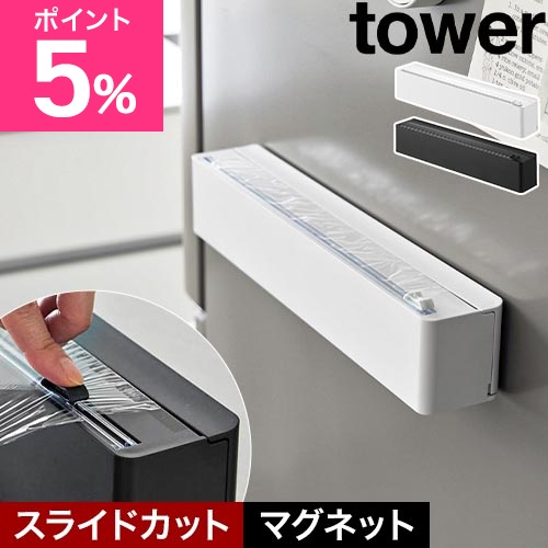 山崎実業 マグネットラップケース タワー スライドカッター付き 4903208106580 4903208106597 ラップホルダー 詰め替え おしゃれ 100m アルミホイル 50m 切れる シンプル 巻き戻り防止 tower ラップ収納 壁面収納 yamazaki タワーシリーズ