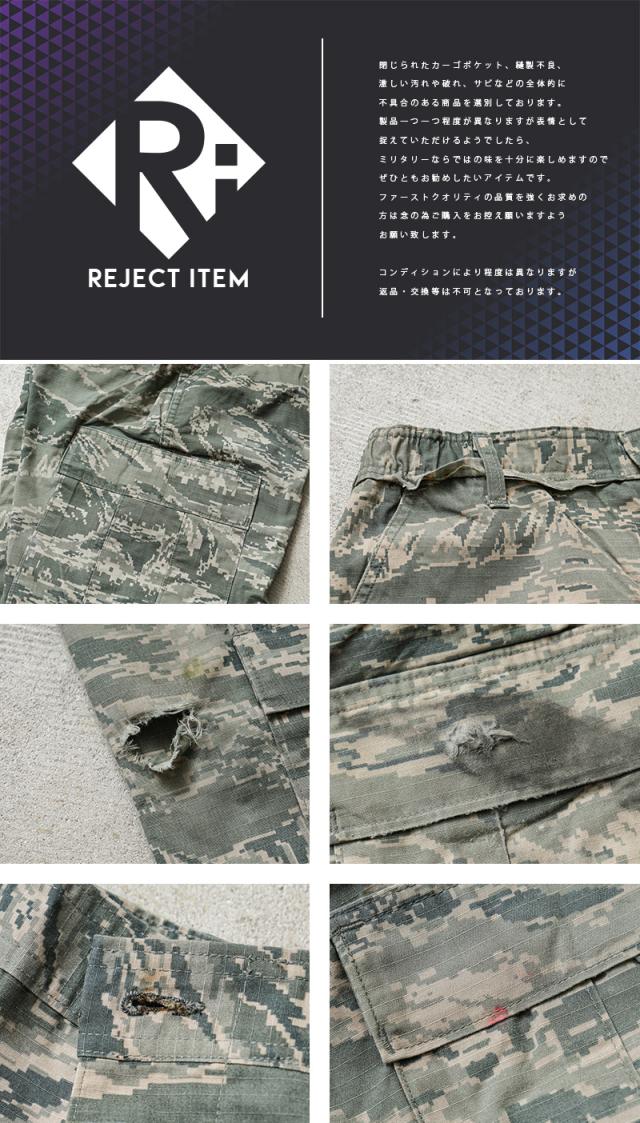 | 商品状態 | 軍放出USED品のリジェクト ※閉じられたカーゴポケット、縫製不良、激しい汚れや破れ、サビなどの全体的に不具合のある商品を選別しております。色合いには個体差がある場合があり、ウエスト内側の生地使いなどには個体差がございます。商品の状態についてご指定いただくことは出来ませんので予めご了承ください。こちらの商品はご購入後の返品・交換は一切お受けできません。予めご了承下さい。 | |||||||||||||||||||||||||||||||||||||||||||||||||||||||||||||||||||||||||||||||||||||||||||||||||||||||||||||||||||
