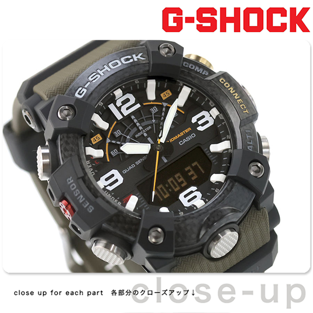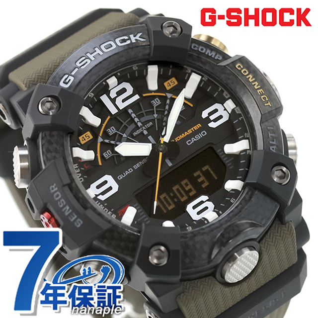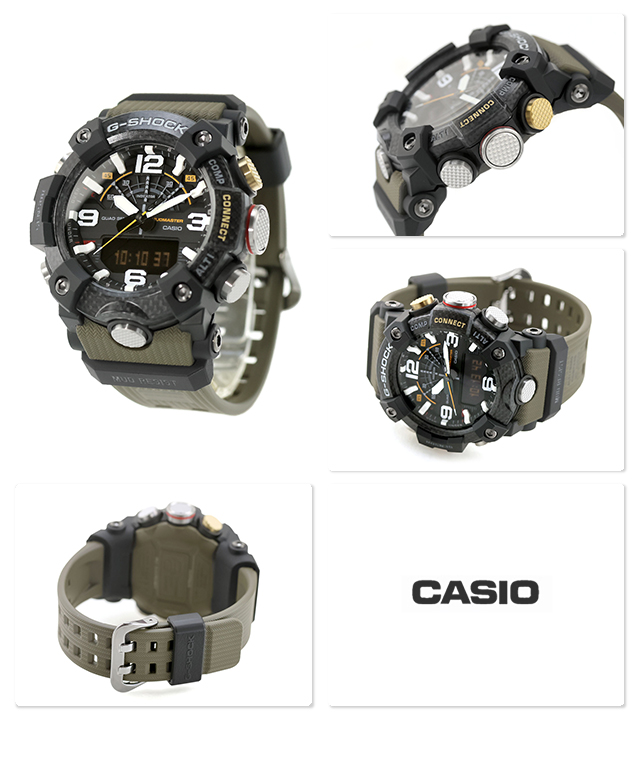 7年保証キャンペーン gショック ジーショック G-SHOCK MASTER OF G-LAND MUDMASTER マスターオブG-ランド マッドマスター Bluetooth 海外モデル クォーツ 電池式 メンズ 腕時計 GG-B100X-1A3DR アナデジ ブラック カーキグリーン ◆極限の陸上環境での使用を想定したMASTER OF G MUDMASTERシリーズ、カーボンコアガード構造採用モデルです。カーボンファイバー強化樹脂ケースとガソリン携行缶を模したベゼル、防塵・防泥フィルターにより高い耐衝撃・防泥性能を実現。方位・高度/気圧・温度・歩数計測のクワッドセンサーとBluetooth連携のミッションログ機能を搭載したグリーンカラーのタフネスウオッチです。 日本未発売モデル