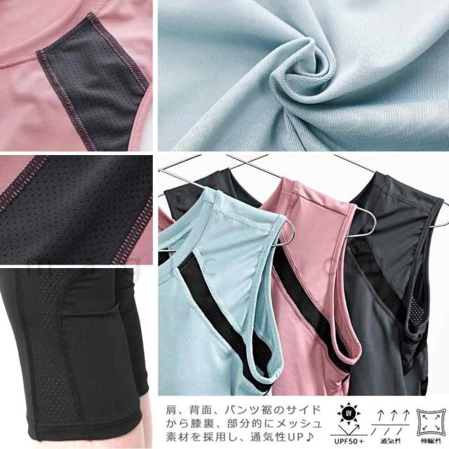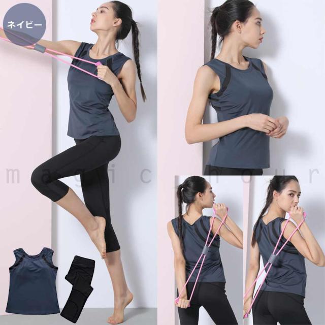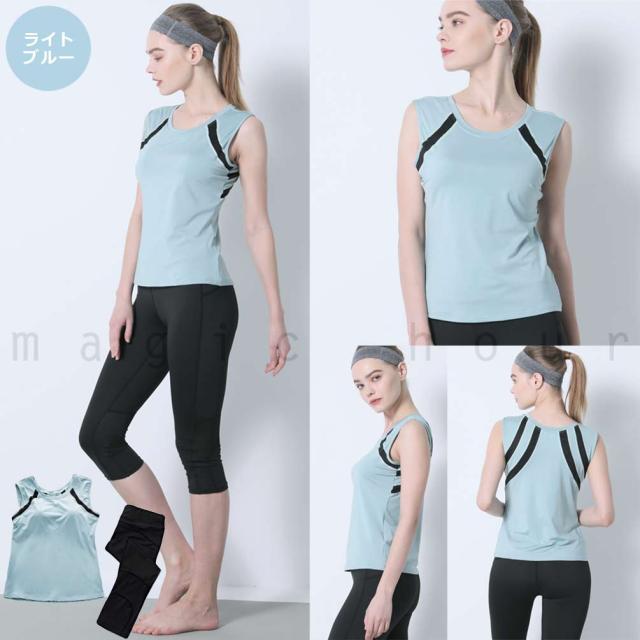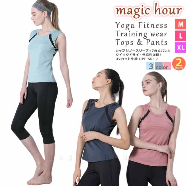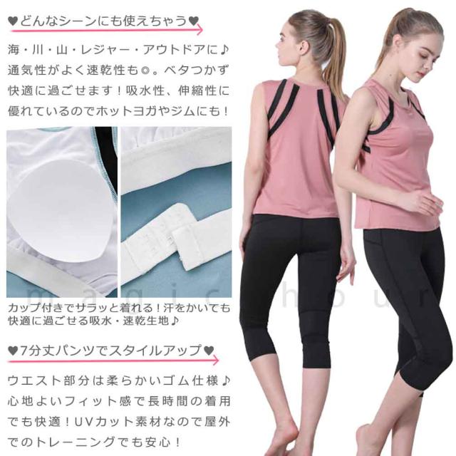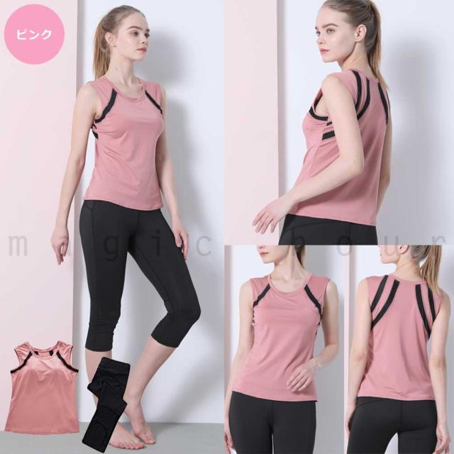 ヨガウェア 上下セット ランニングウエア カップ付き 速乾 ノースリーブ 7分丈 レギンス ヨガパンツ ピラティス 体型カバー 初心者 スポーツウェア UVカット