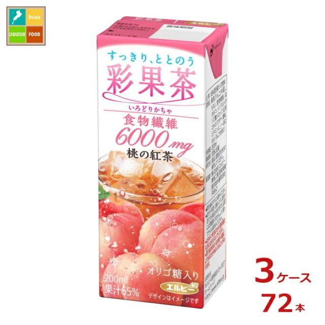 送料無料 エルビー 彩果茶 食物繊維6000mg ピーチティー200ml紙パック×3ケース(全72本)新商品 新発売