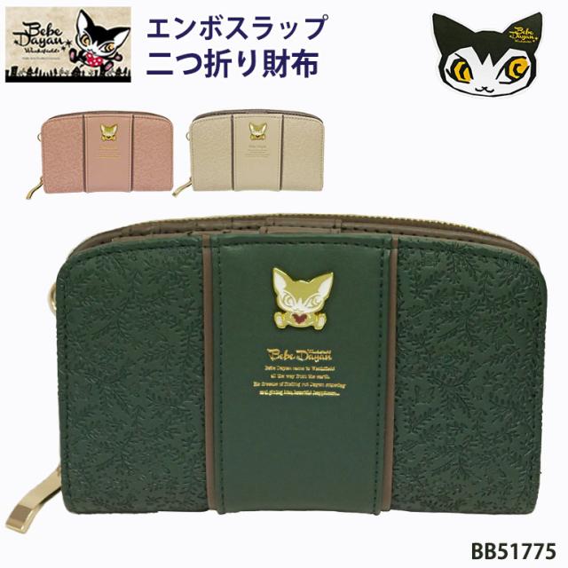 ベベダヤン 猫 サイフ 財布 二つ折り 花柄 型押しデザイン 2つ折り 札入 ラウンドファスナー ネコ キャラクター わちふぃーるど ダヤングッズ ウォレット 大容量 カードポケット 高校生 大学生 ママ 主婦 ミセス ギフト 贈り物 BB51775