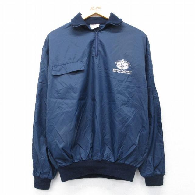 古着 長袖 ハーフジップ ナイロン ジャケット メンズ 80年代 80s AMDCO USA製 紺 26feb24