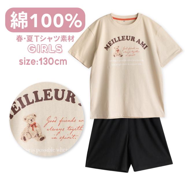 パジャマ キッズ 女の子 綿100% 半袖 春 夏 柔らかく軽い薄手の快適Tシャツ かわいい くま プリント ベージュ 130 子供 ガールズ ジュニア 部屋着 ルームウェア お泊り 林間学校 修学旅行 メール便なら 送料無料 z80197