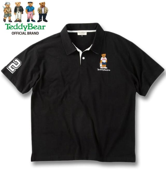 大きいサイズ Teddy Bear 鹿の子 刺繍&プリント 半袖 ポロシャツ ブラック 3L 4L 5L 6L 8L/1278-6512-2-69
