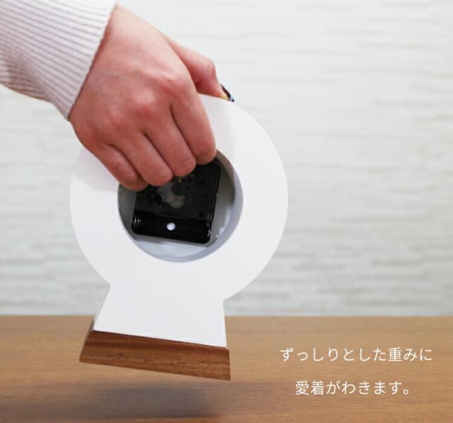 鍵穴をモチーフにしたオブジェのようなデザインのテーブルクロック。 さらりとした質感のボディに、ぬくもりのあるウッドのベースと長針を合わせました。 ずっしりとした重みに愛着がわきます。 玄関やトイレなど、ちょっと時間を確認したい場所にも置きやすいコンパクトなサイズ感です。 ●鍵穴のようなシルエットをそのまま活かしたキュートなフォルムは、見た目以上にずっしりと重く、時計としてだけでなくオブジェとしても楽しめる存在です。 ●さらりとした質感のボディーにオウトツを加えて文字盤にしています。 数字は凸、ロゴマークは凹とこだわりました。真っ白な中にブラックの数字がはっきりと見え、視認性もクリアに。 ●土台部分にあしらったウッドベースがナチュラルで温かみを感じさせます。 長針にも木を使うことで、よりナチュラルなクラフトテイストが感じられます。 秒針がなめらかに進む無音タイプなので、寝室や静かな場所でも気兼ねなくお使いいただけます。 人気のミッドセンチュリーから、ナチュラルでアットホームな表情まで。 大切な人への贈り物としてもおすすめです。 |