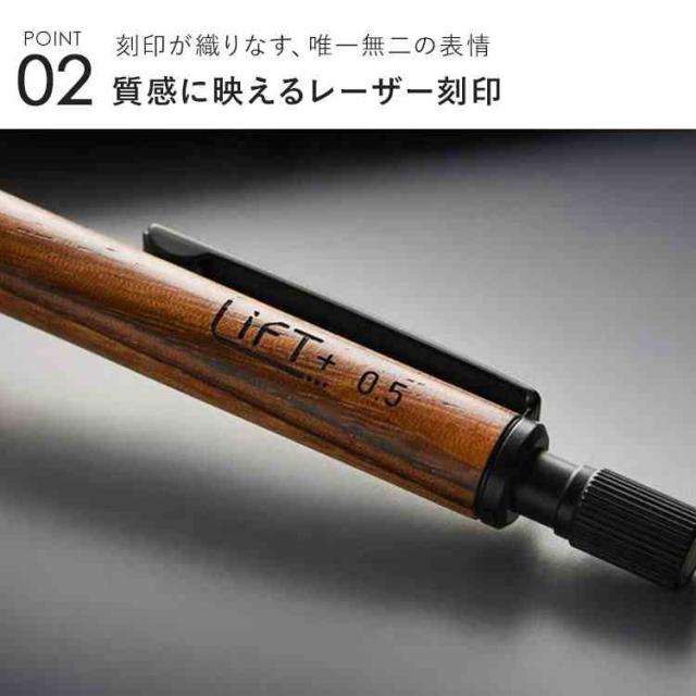 手に取った瞬間、違いがわかる上質感。紀寺商事のオリジナルシリーズ「LIFT+ WOOD」美しい木目が魅力の天然木軸を採用した、日本製シャープペン。天然木のぬくもりを感じ、使うほどに愛着が深まる、大人のための高級文具です。 自分へのご褒美にはもちろん、就職祝い・昇進祝い・ギフトにも最適。 使うほどに愛着が深まる、長く付き合える一本です。 ![]() ![]()